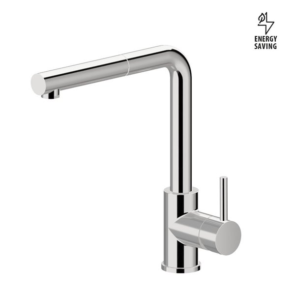 Miscelatore monocomando per lavello con bocca girevole e doccia estraibile. Flessibili di alimentazione F3/8”.