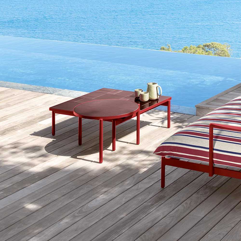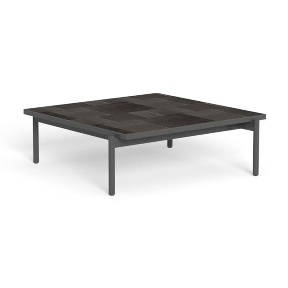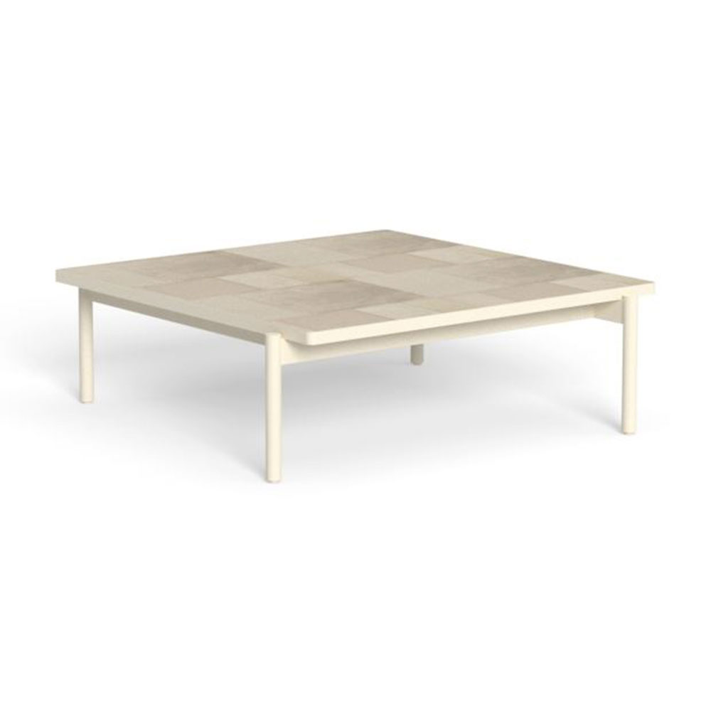 Quadrato e regolare, il tavolo caffè Nalu si presta a living di ogni dimensione. Composto da un puzzle di gres smaltato in tinta con l’alluminio delle strutture è la soluzione perfetta per dare carattere al set.